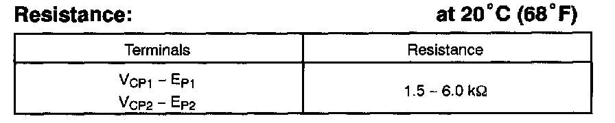 Resistance: 1.25 - 2.35 kohms at 20 °C (68 °F)