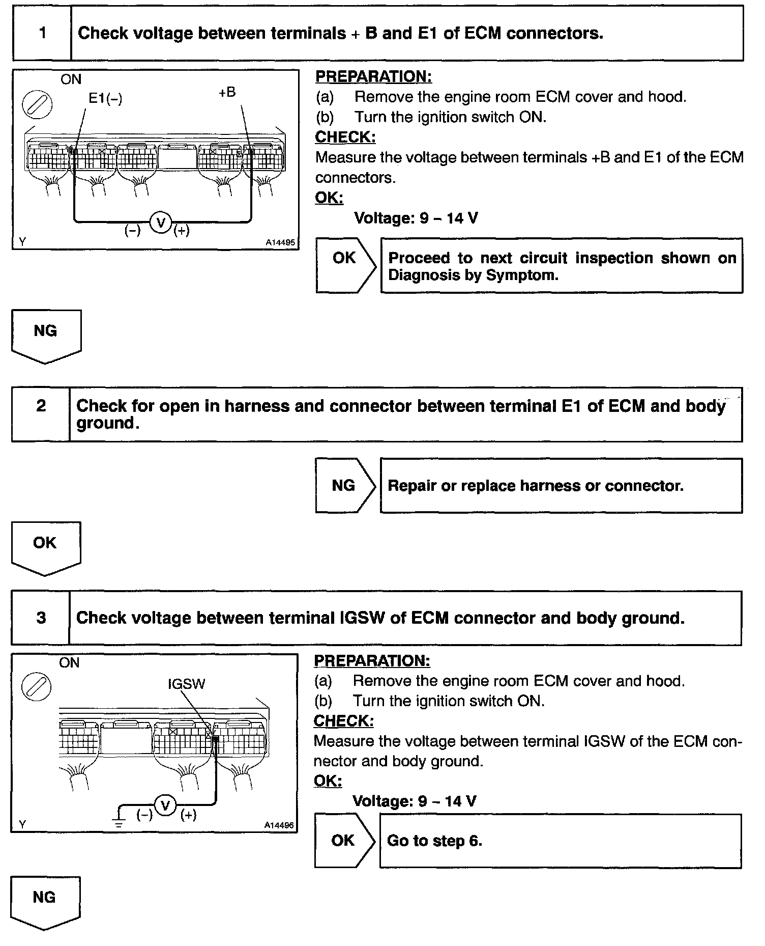 This signal causes current to flow to the coil, closing the contacts of the EFI main relay and supplying power to terminal +B of the ECM.