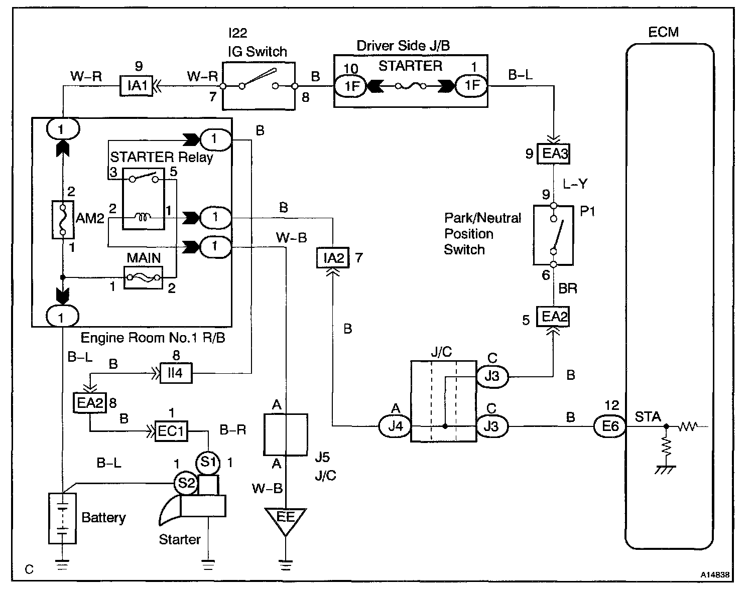 When the engine is cranked, the intake air flow is slow, so fuel vaporization is poor. A rich mixture is therefore necessary in order to achieve good startability. While the engine is being cranked, the battery positive voltage is applied to terminal STA of the ECM. The starter signal is mainly used to increase the fuel injection volume for the starting injection control and after-start injection control.