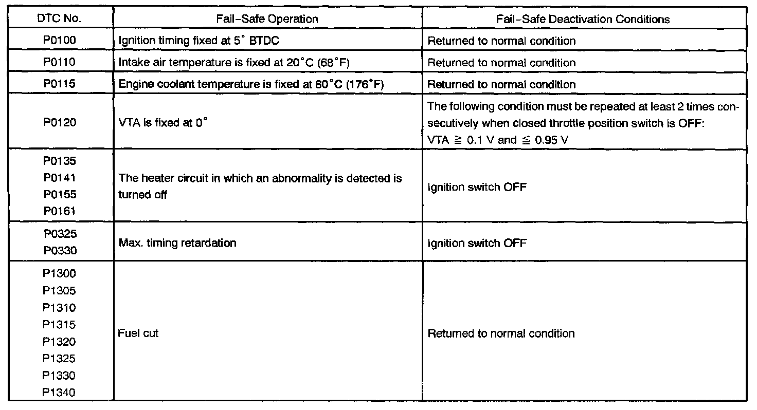 If any of the following codes is recorded, the ECM enters fail-safe mode.