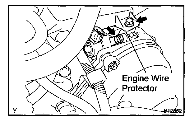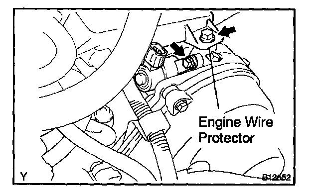 a. Remove the bolt, and disconnect the engine wire protector from the camshaft bearing cap.