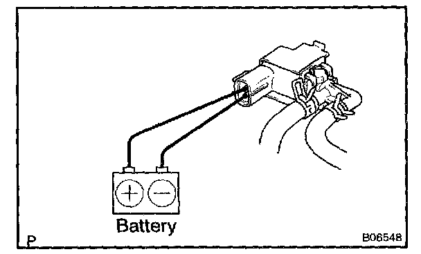 2. Connect the positive (+) and negative (-) leads from the battery to the VSV terminals for the EVAP.