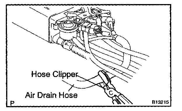 1. Close off the air drain hose at the marked position of the canister with a hose clipper or similar instrument.