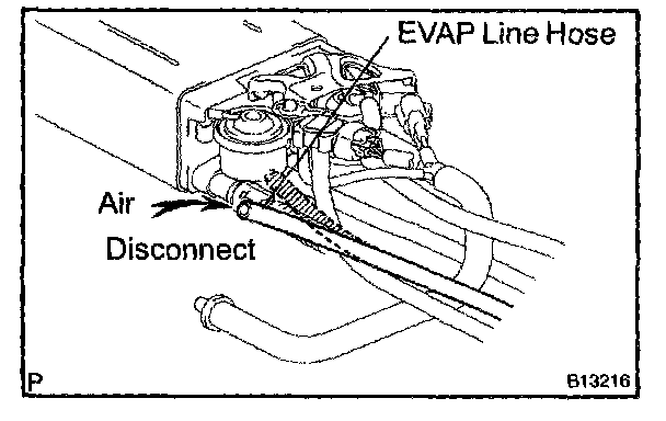 a. Disconnect the air inlet line hose from the charcoal canister.