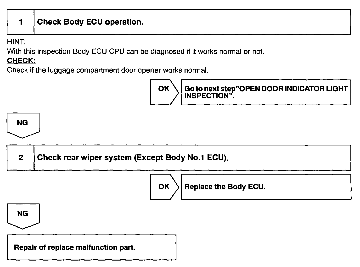 INSPECT BODY NO.1 ECU