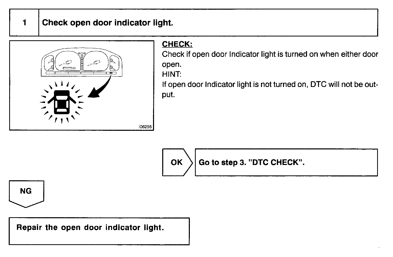INSPECT OPEN DOOR INDICATOR LIGHT