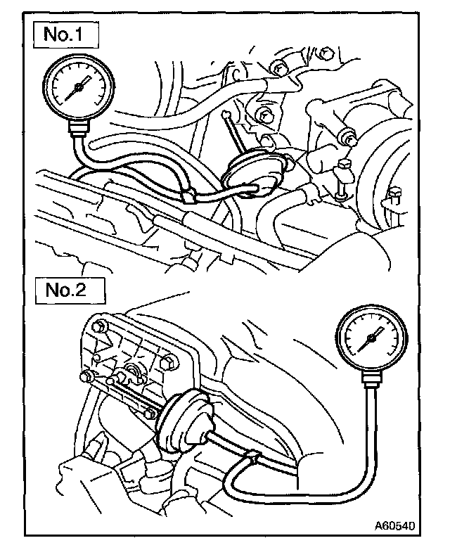 a. Using a 3-way connector, connect vacuum gauge to the actuator hose.