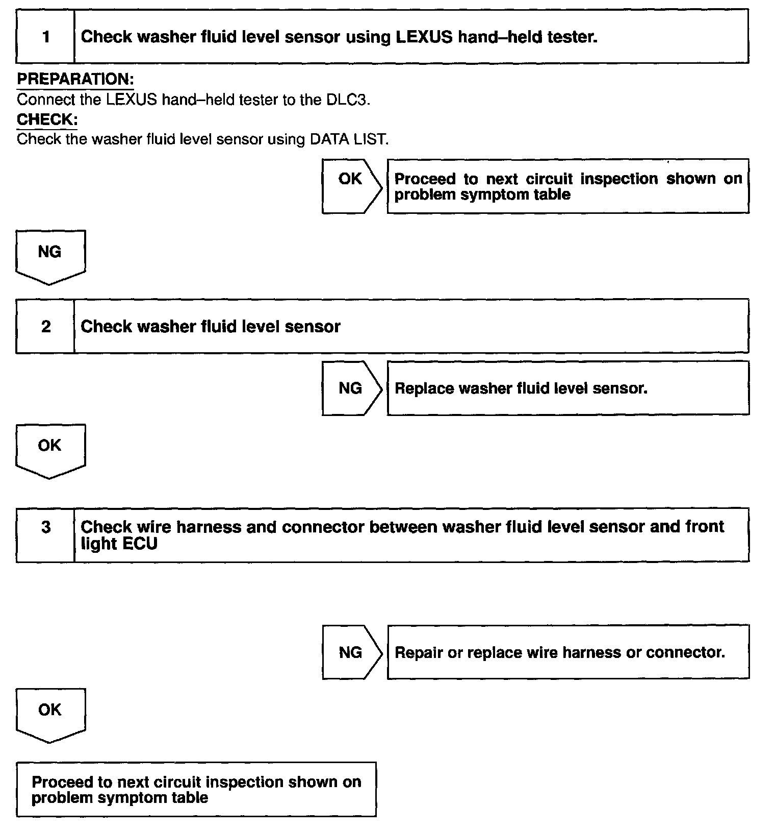 CIRCUIT DESCRIPTIONFront Light ECU receives washer fluid level sensor information, and sends it through the multiplex communication circuit to the combination meter.