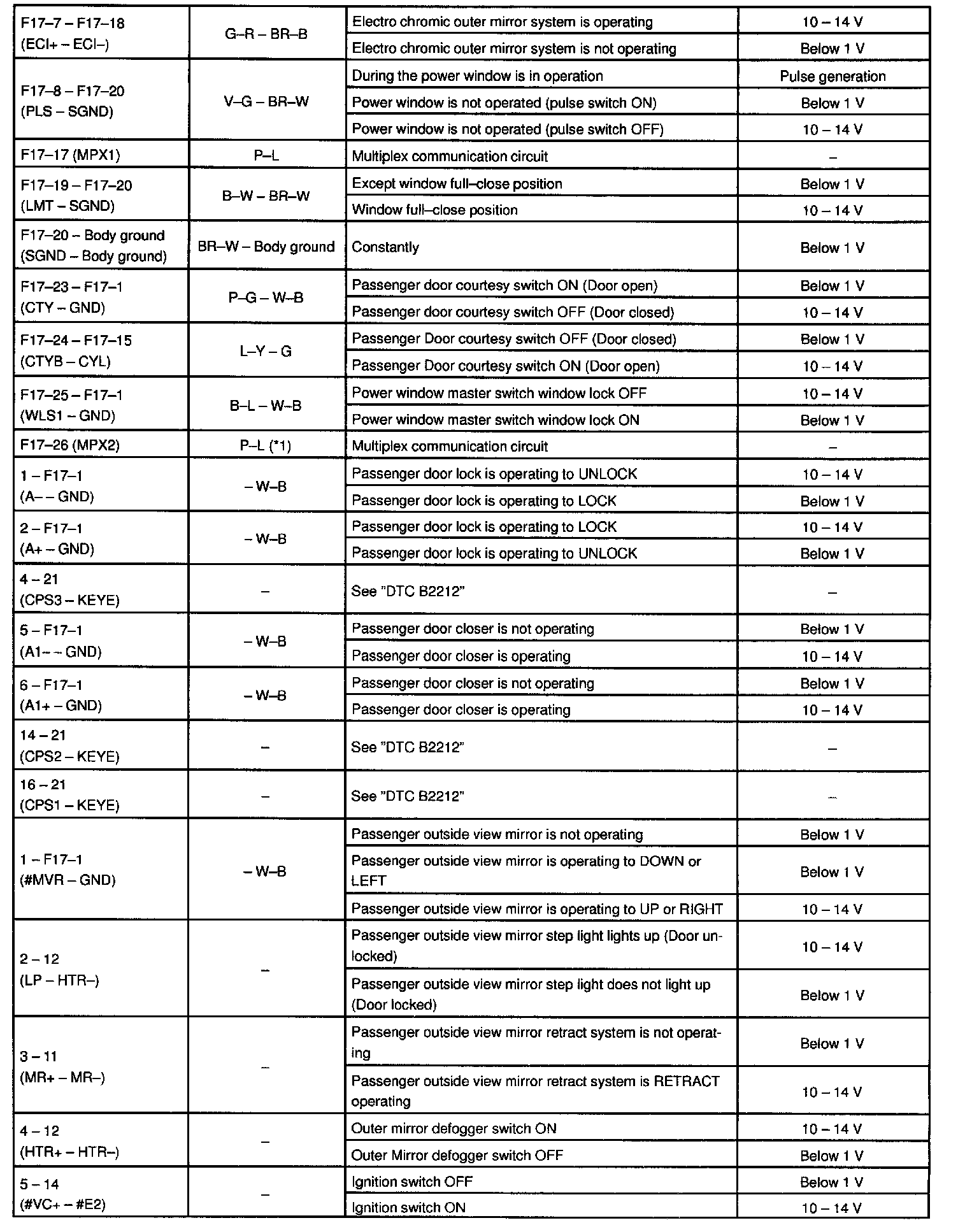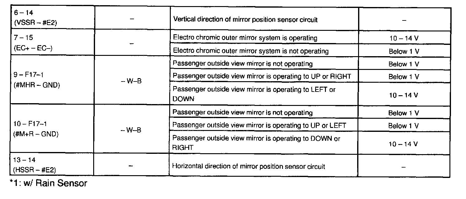 Pinout Values and Diagnostic Parameters