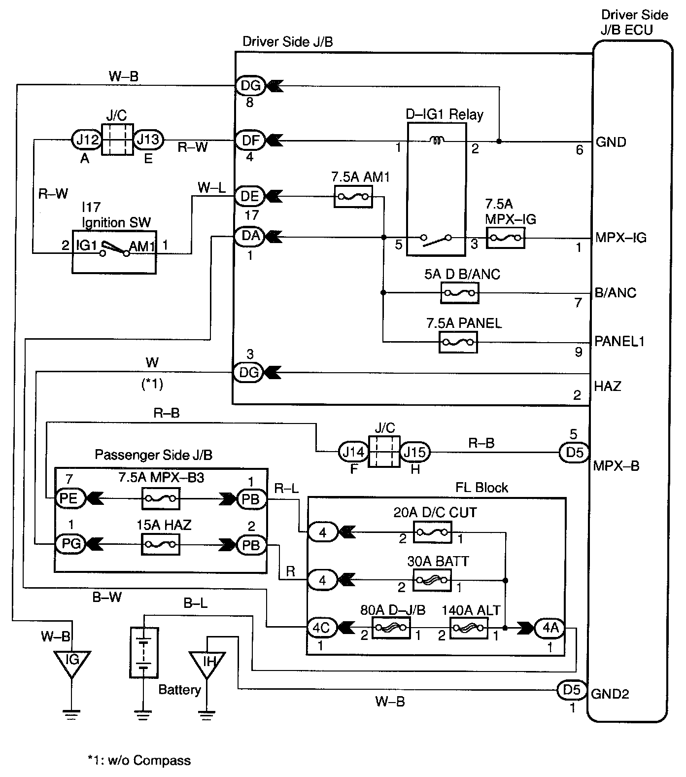 This circuit provides power to operate the Driver side J/B ECU.