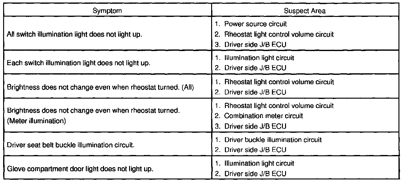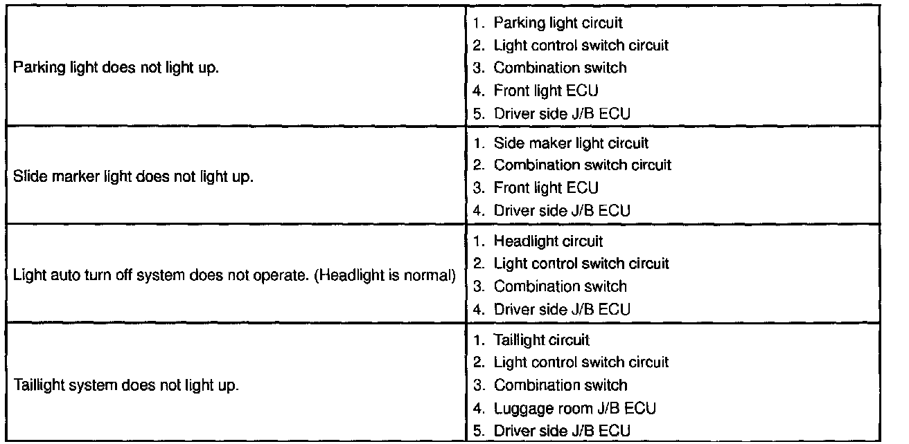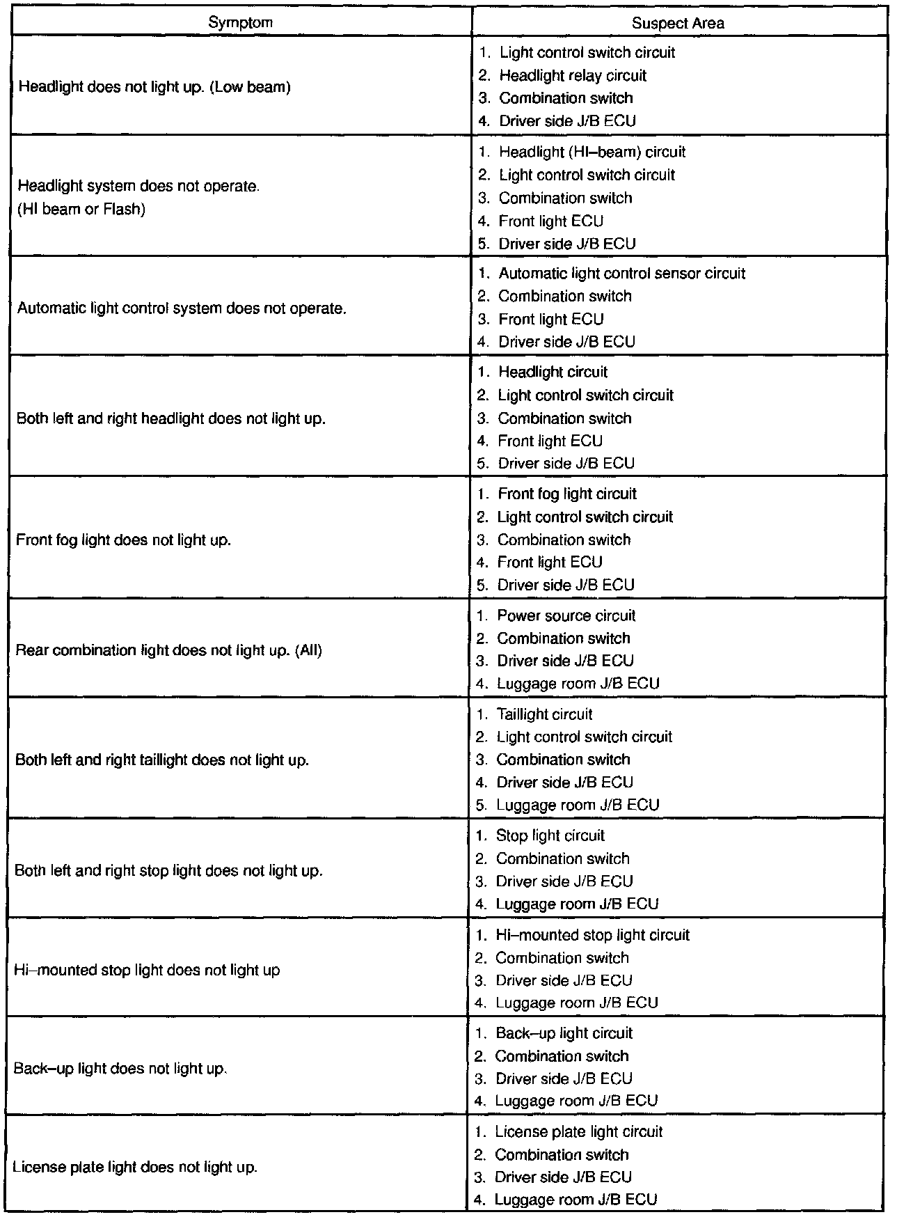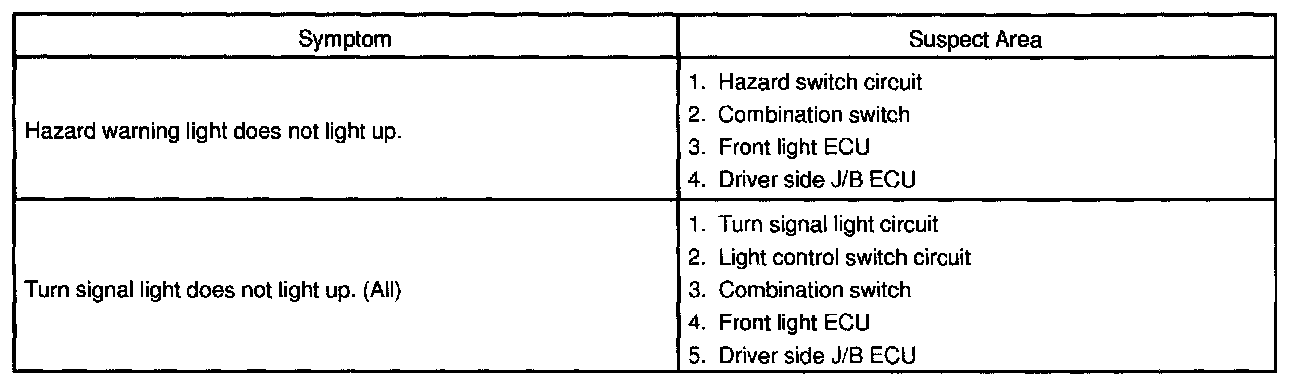 Problem Symptoms Table - Turn Signal And Hazard Warning System: