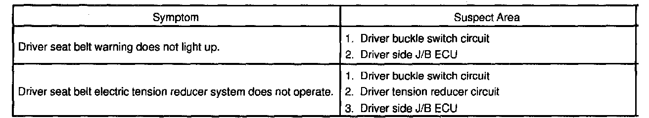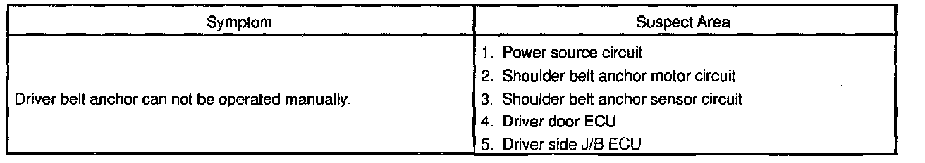 Problem Symptoms Table - Power Shoulder Belt Anchorage System: