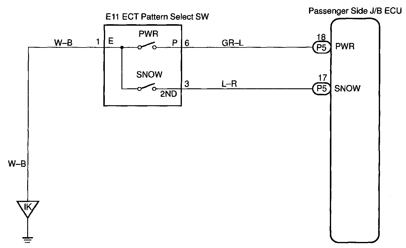 Passenger sides J/B ECU detects the state of the ECT pattern select switch.