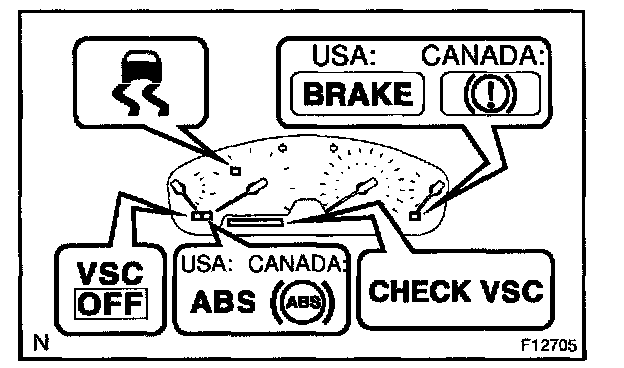 HINT: If the "VSC TEST" does not displayed, inspect the VSC warning indicator circuit and Ts terminal circuit.