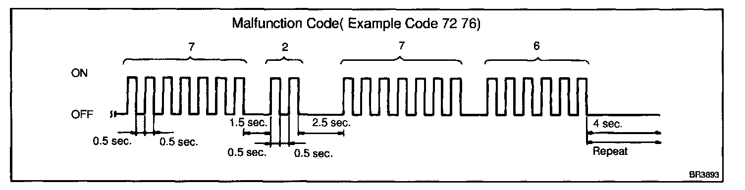 - If every sensor is normal, the normal code is output (A cycle of 0.25 seconds ON and 0.25 seconds OFF is repeated).