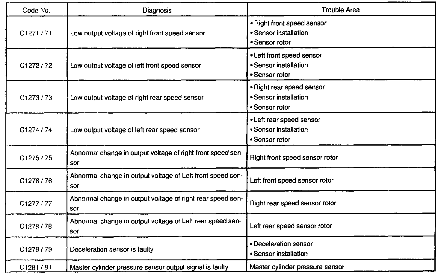 Drive the vehicle with the speed faster than 45 km/h (28 mph) for several seconds and check that the ABS warning light comes off.