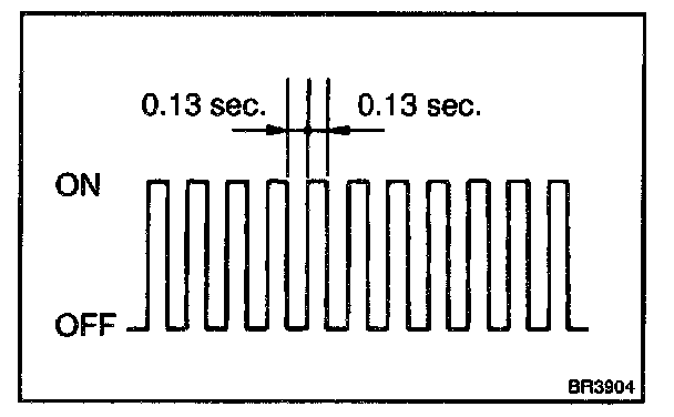 3. After turning the ignition switch ON, check that the VSC warning light is lit for about 4 seconds and then starts quick blinking at 0.13 seconds intervals.