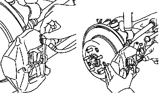 - If the piston is difficult to push in, loosen the bleeder plug and push in the piston while letting some brake fluid escape.