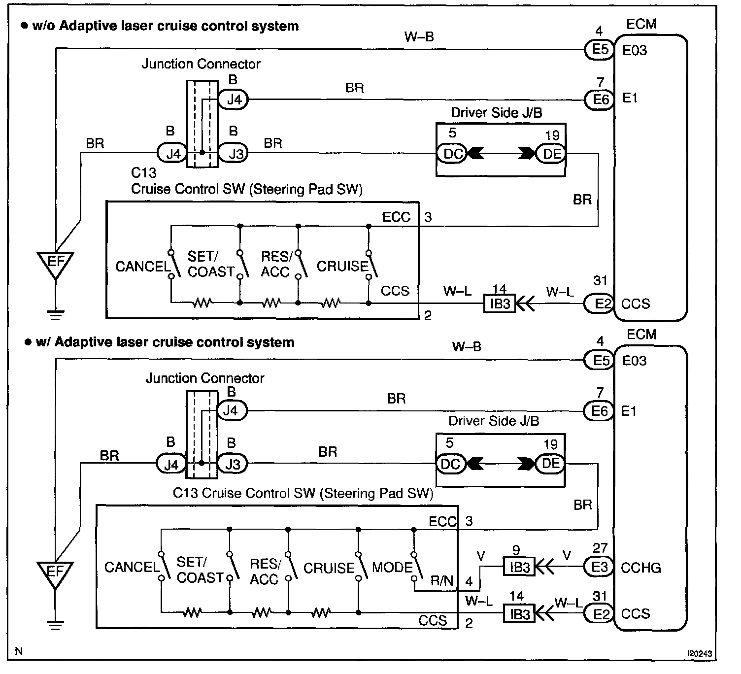 This circuit carries the SET/COAST, RESUME/ACCEL and CANCEL voltage signals to the ECU.