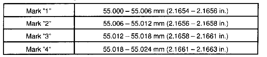 Standard oil clearance: 0.021 - 0.047 mm (0.0008 - 0.0019 inch)