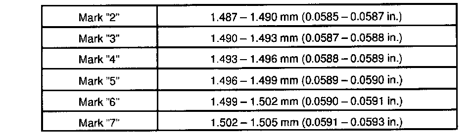 Thrust washer thickness: 2.440 - 2.490 mm (0.0961 - 0.0980 inch)