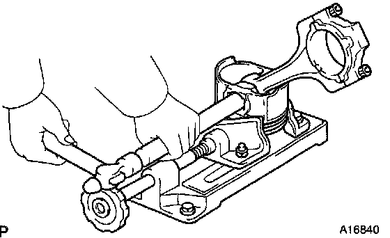 b. Push the piston, connecting rod assembly and upper bearing through the top of the cylinder block.
