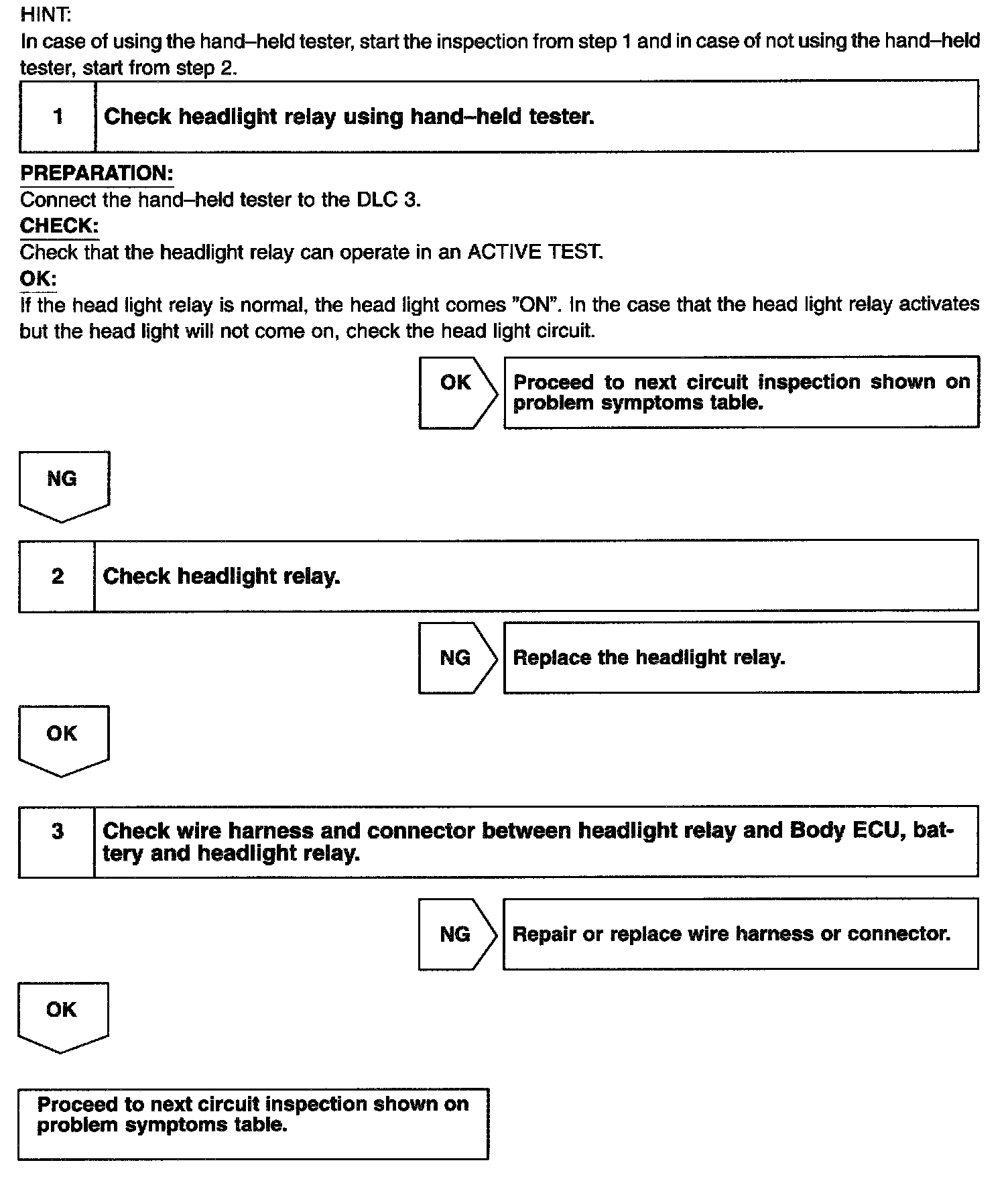 CIRCUIT DESCRIPTIONHead light relay will be "ON" by operating the headlight switch. The transistor which activates the taillight relay has two sorts: one activates directly by the headlight switch for fail safe and the other activates by CPU. The one that activates by CPU has two systems and prevents the headlight from turning off at the time of one system trouble in the automatic operation circuit.