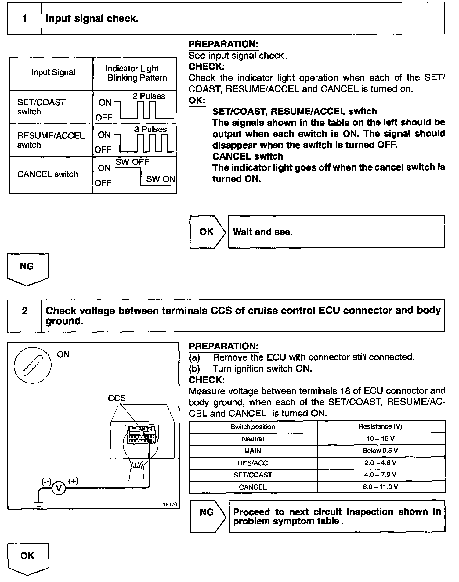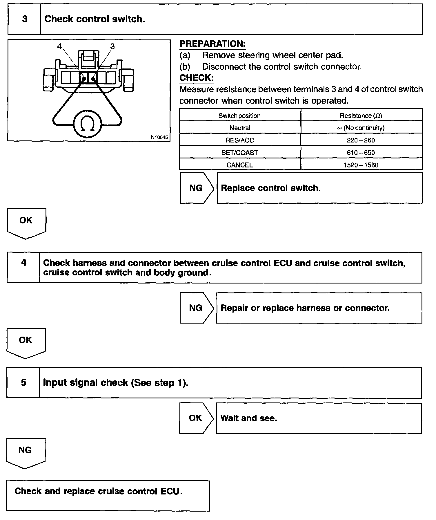 This circuit carries the SET/COAST, RESUME/ACCEL and CANCEL signals (each voltage) to the ECU.