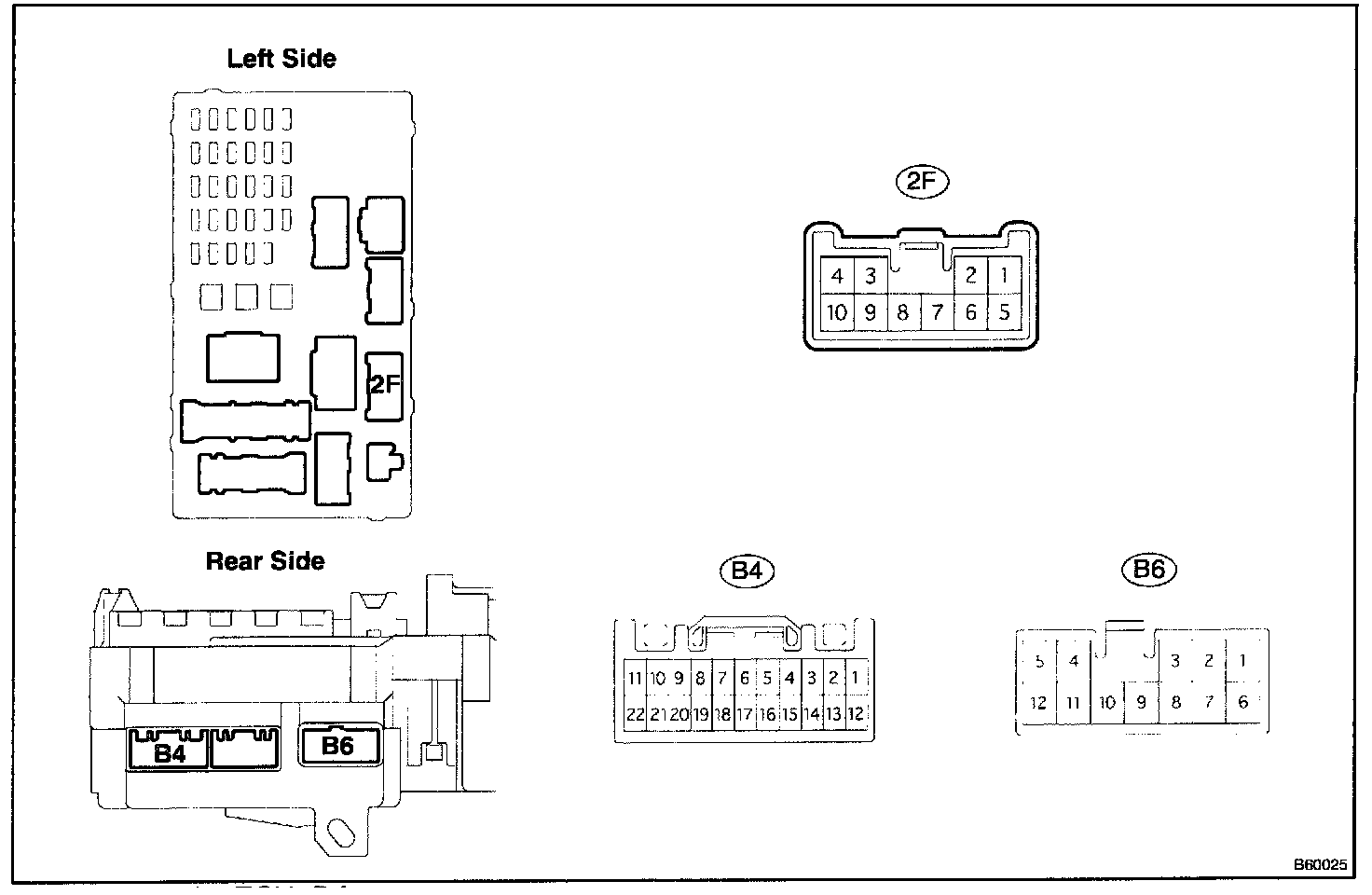 b. Disconnect the 2F driver side junction block connector, and check the voltage of the terminal of the disconnected connector.