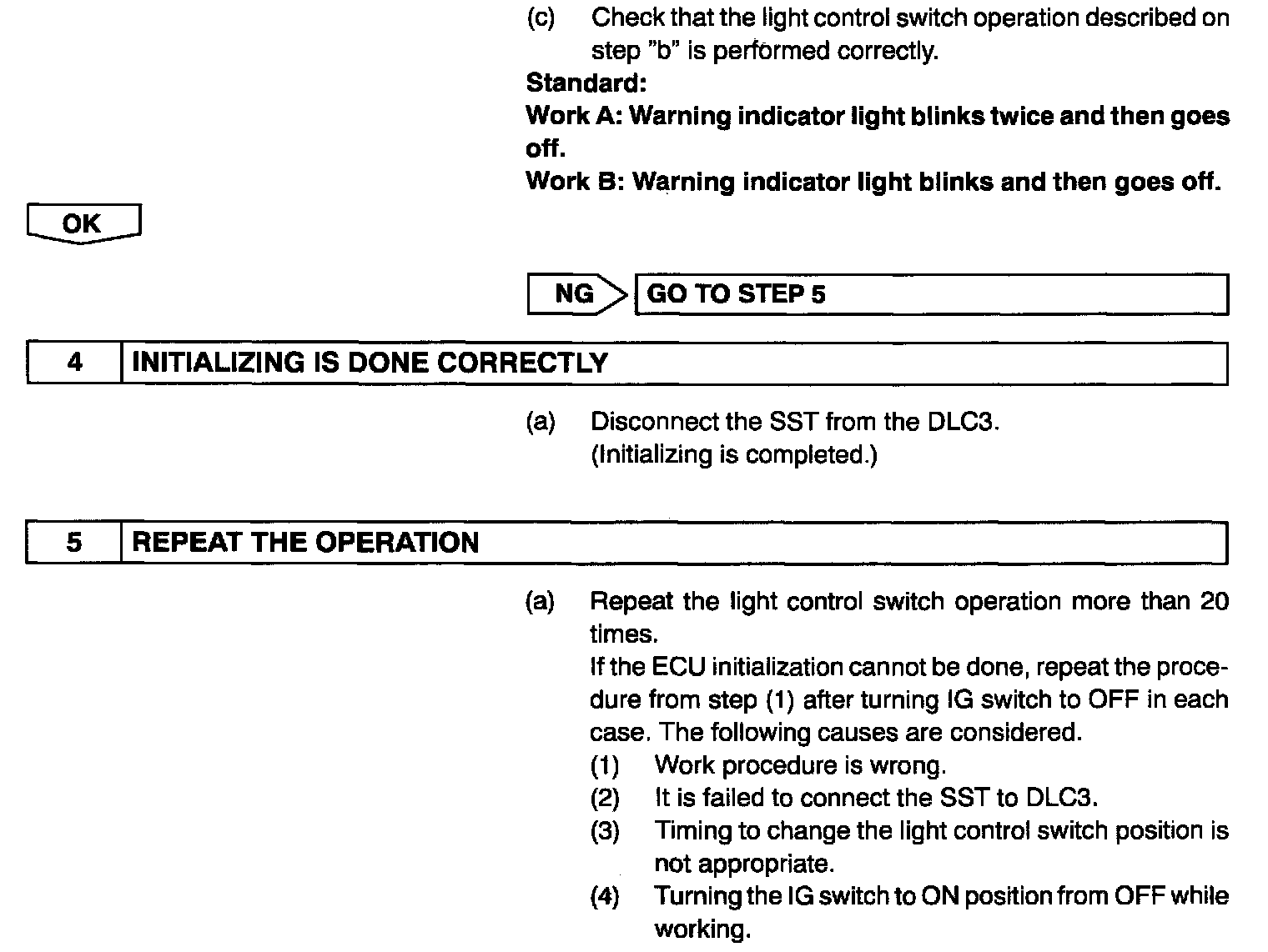HEADLIGHT BEAM LEVEL CONTROL ECU INITIALIZINGa. Initialize the headlight beam level control ECU.