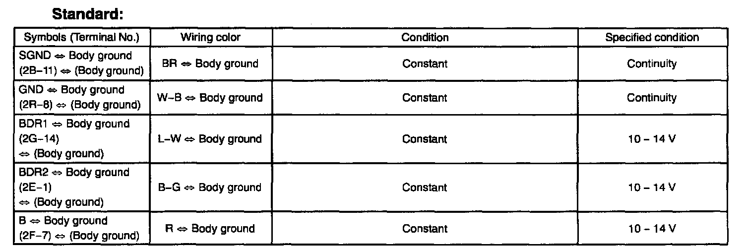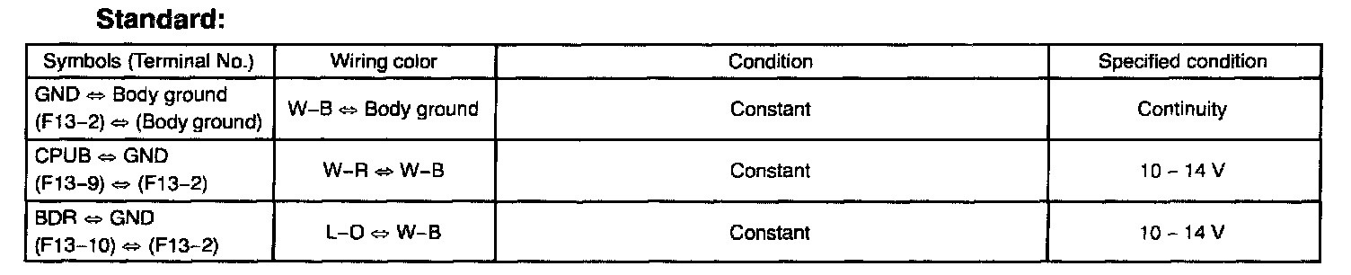 b. Check the voltage and continuity of each terminal of the wire harness side connectors.