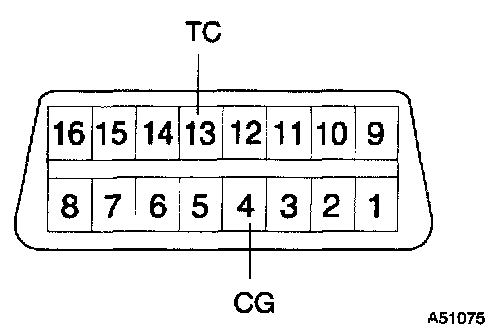 1) Using SST, connect terminals 13 (TC) and 4 (CG) of DLC3.