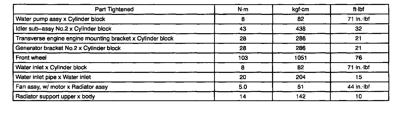 Torque Specification