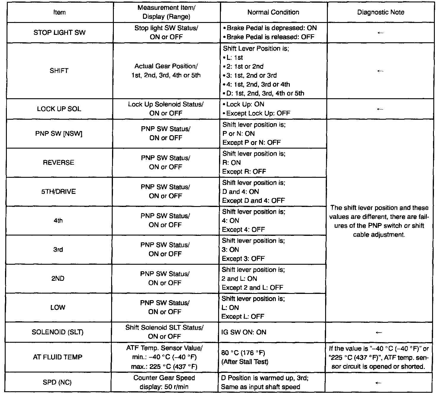 DATA LISTHINT: According to the DATA LIST displayed by the OBD II scan tool or Hand-held tester, you can read the value of the switch, sensor, actuator and so on without parts removal. Reading the DATA LIST as a first step of troubleshooting is one of the method to shorten the labor time.