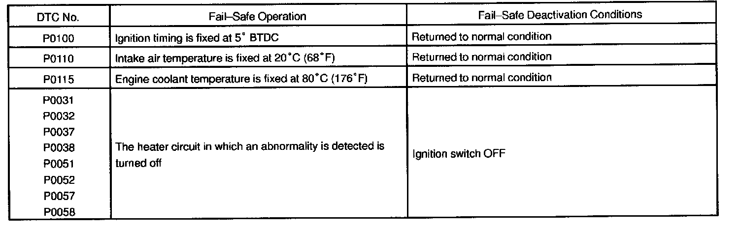 If any of the codes is recorded, the ECM enters into the fail-safe mode.