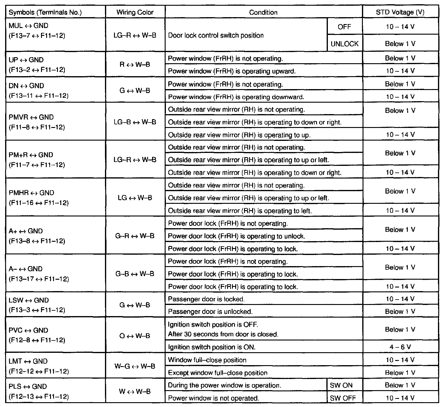 Pinout Values and Diagnostic Parameters