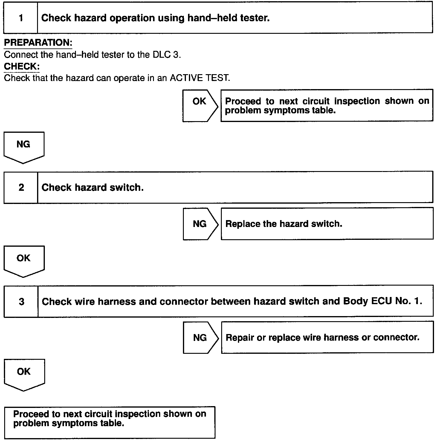 HINT: In case of using the hand-held tester, start the inspection from step 1 and in case of not using the hand-held tester, start from step 2.