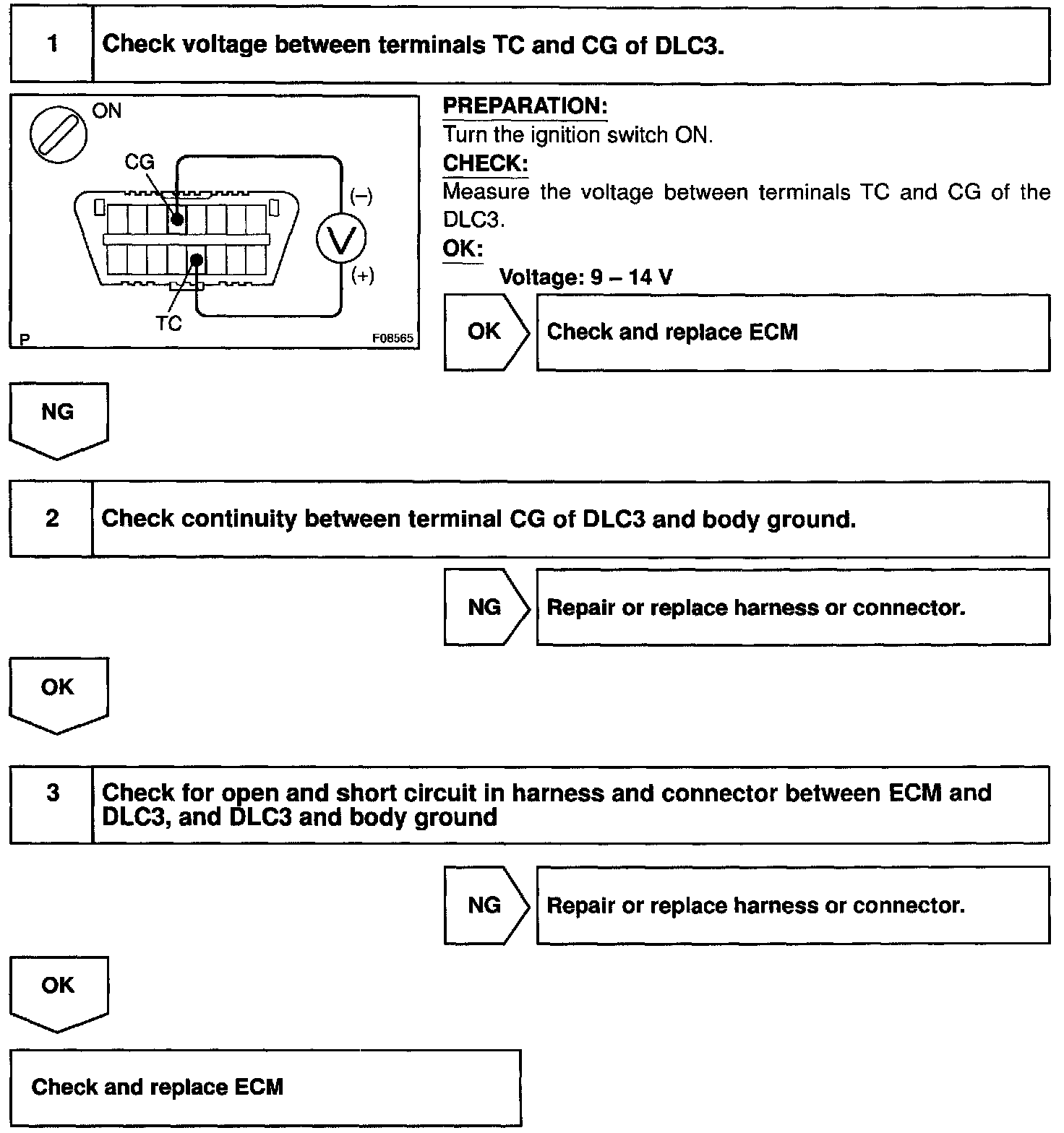 - For the above phenomenon, an open or short in the wire harness, or malfunction inside the ECM is the likely cause.
