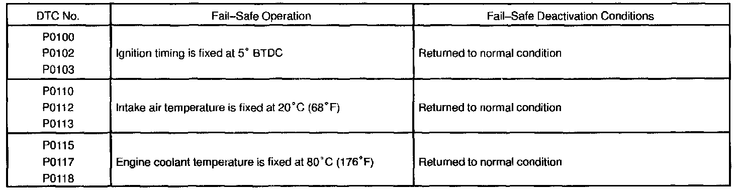If any of the codes is recorded, the ECM enters fail-safe mode.
