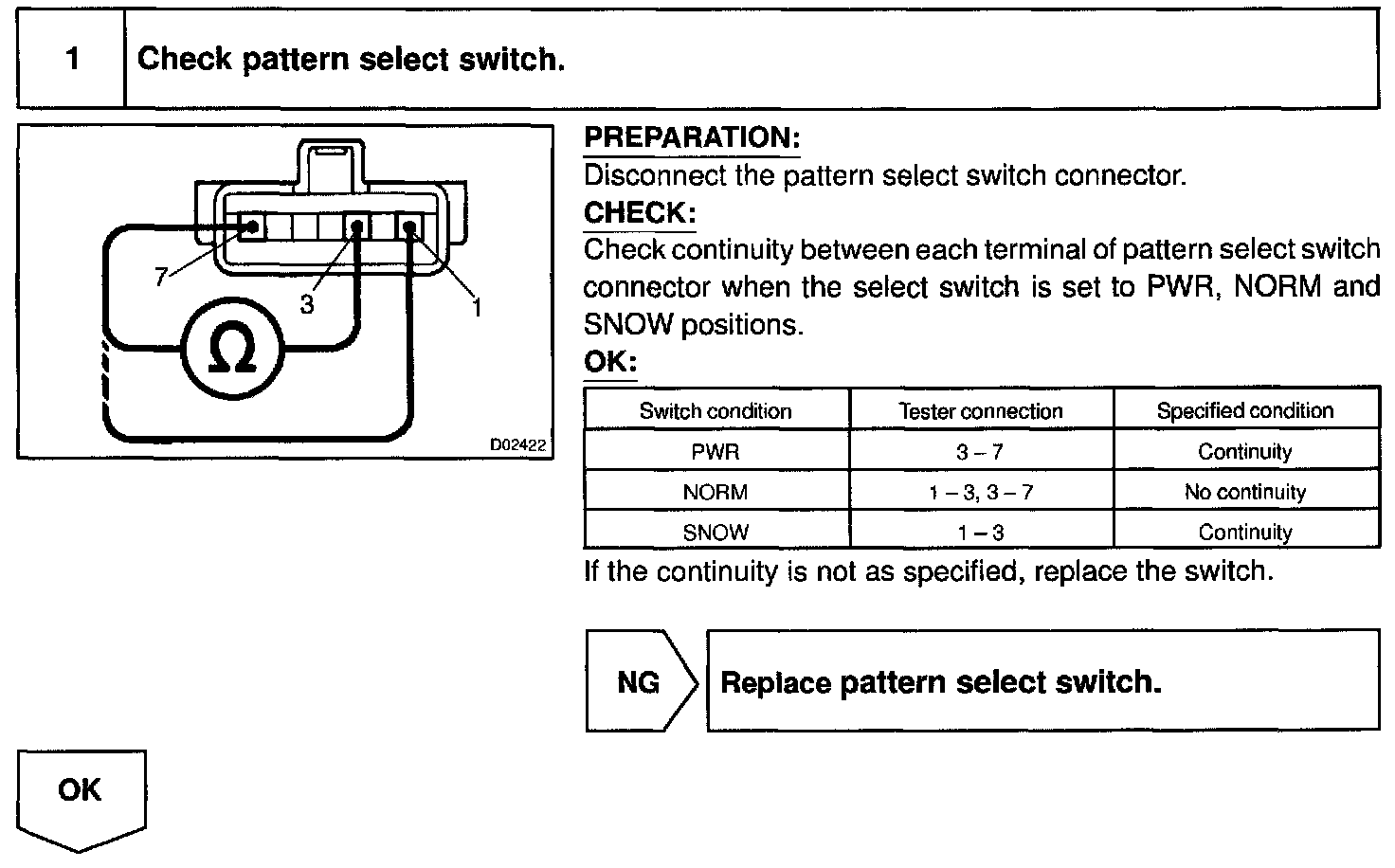 CIRCUIT DESCRIPTIONThe ECM memory contains the shift programs for the NORMAL, POWER and SNOW patterns, 2 position, L position and the lock-up patterns. By following the programs corresponding to the signals from the pattern select switch, the park/neutral position and other various sensors, the ECM switches the solenoid valves ON and OFF, and controls the transmission gear change and the lock-up clutch operation.