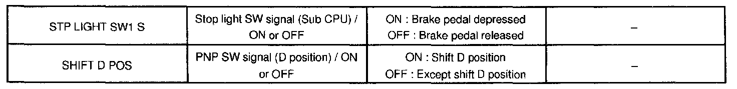 DATA LISTHINT: According to the DATA LIST displayed on the the hand-held tester, you can read the value of the switch, the sensor and so on without removing parts. Reading the DATA LIST as a first step of troubleshooting is one of the method to shorten the labor time.