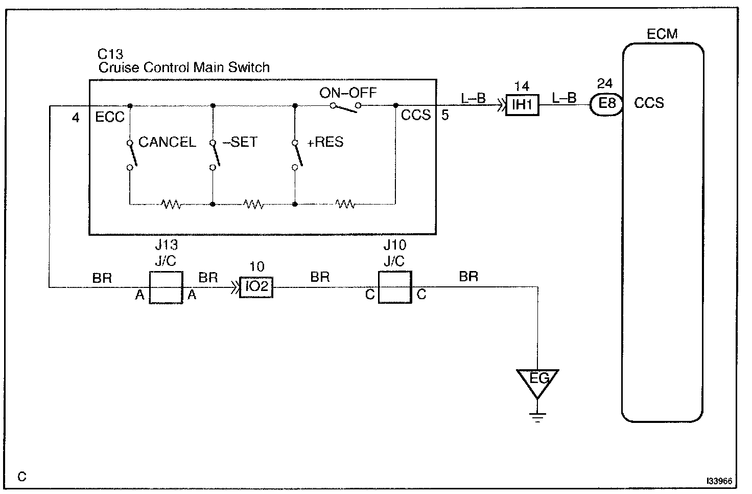 This circuit carries the -/SET, +/RES and CANCEL signals (each voltage) to the ECM.