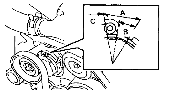 d. After installing a new belt, check that the mark is within the B range as shown in the illustration.