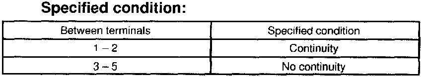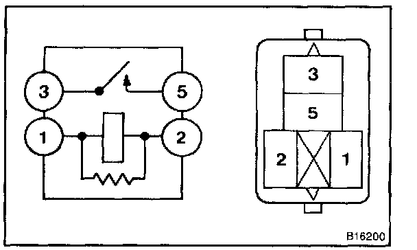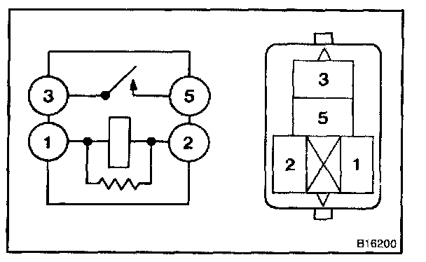 2. Using an Ohmmeter, check for continuity between terminals 3 and 5 when the battery voltage is applied across terminals 1 and 2.