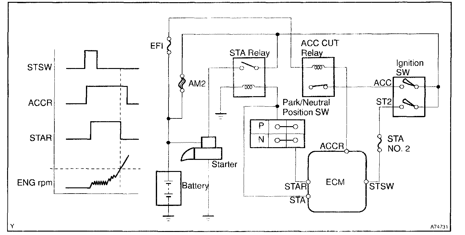 CIRCUIT DESCRIPTIONThe system detects the IG switch's starting signal (STSW signal) and then supply current to the starter until perfect engine combustion is judged The purpose is to reduce the holding time of the ignition key.