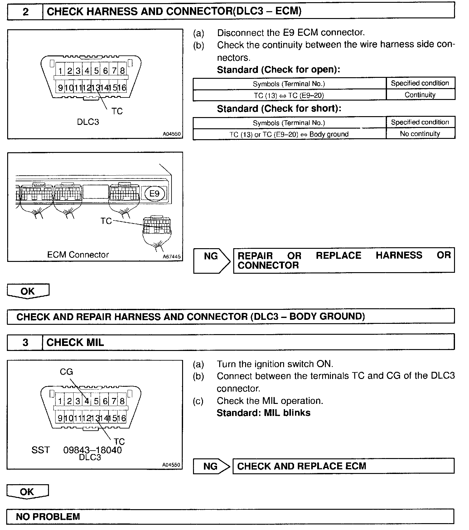 - For the above phenomenon, an open or short in the wire harness, or malfunction inside the ECM is the likely cause.