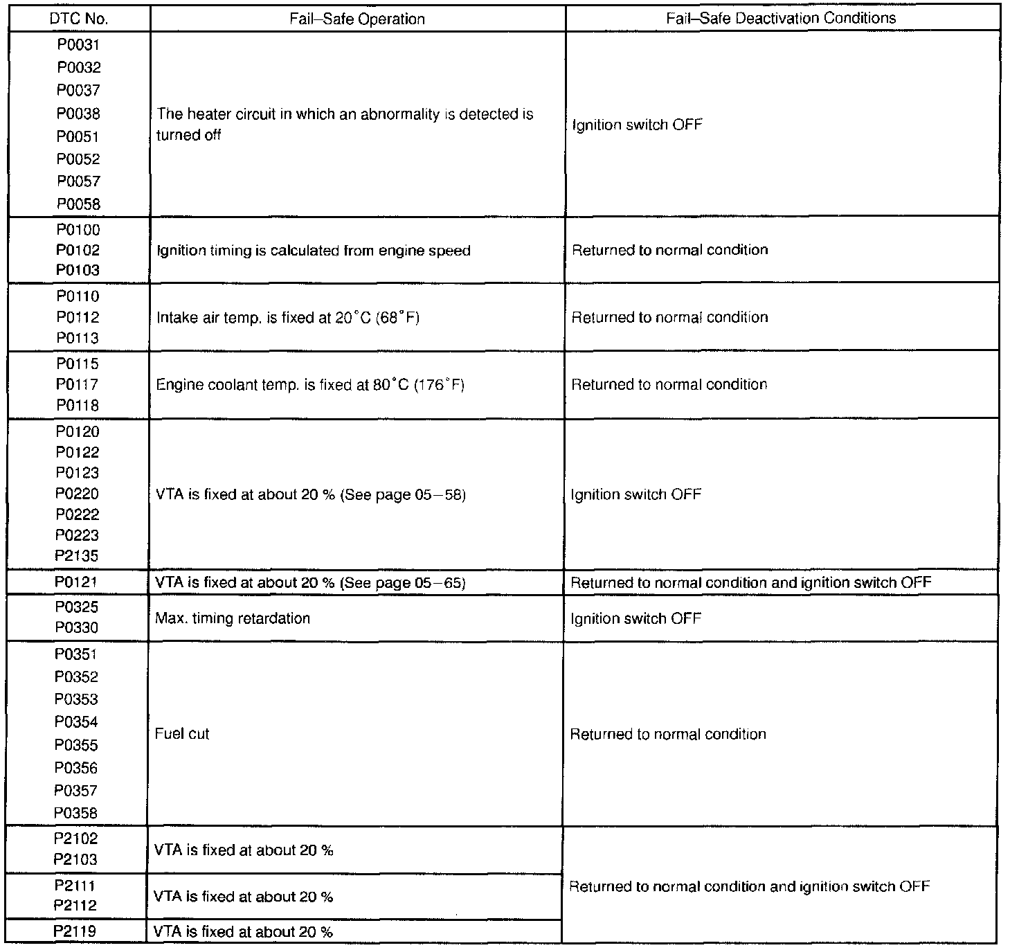 If any of the given codes is recorded, the ECM enters into the fail-safe mode.
