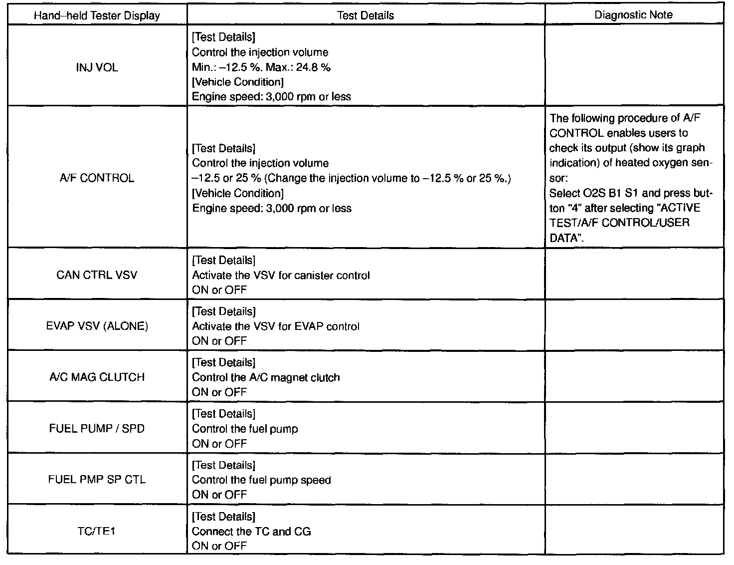 ACTIVE TESTHINT: Performing the ACTIVE TEST using the hand-held tester or the OBD II scan tool allows the relay, VSV, actuator and so on to operate without parts removal. Performing the ACTIVE TEST as a first step of troubleshooting is one of the method to shorten the labor time.