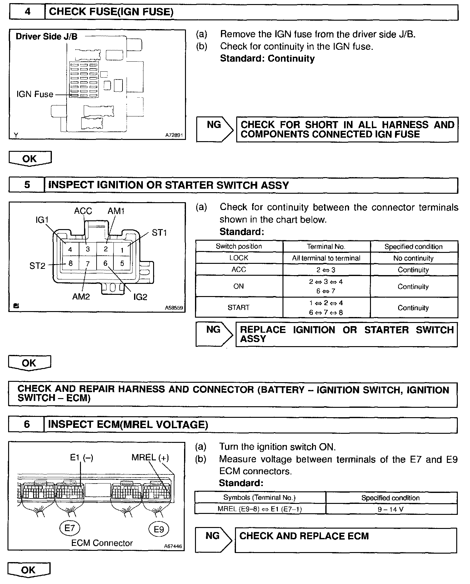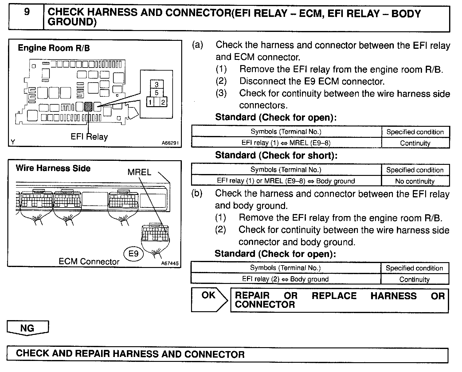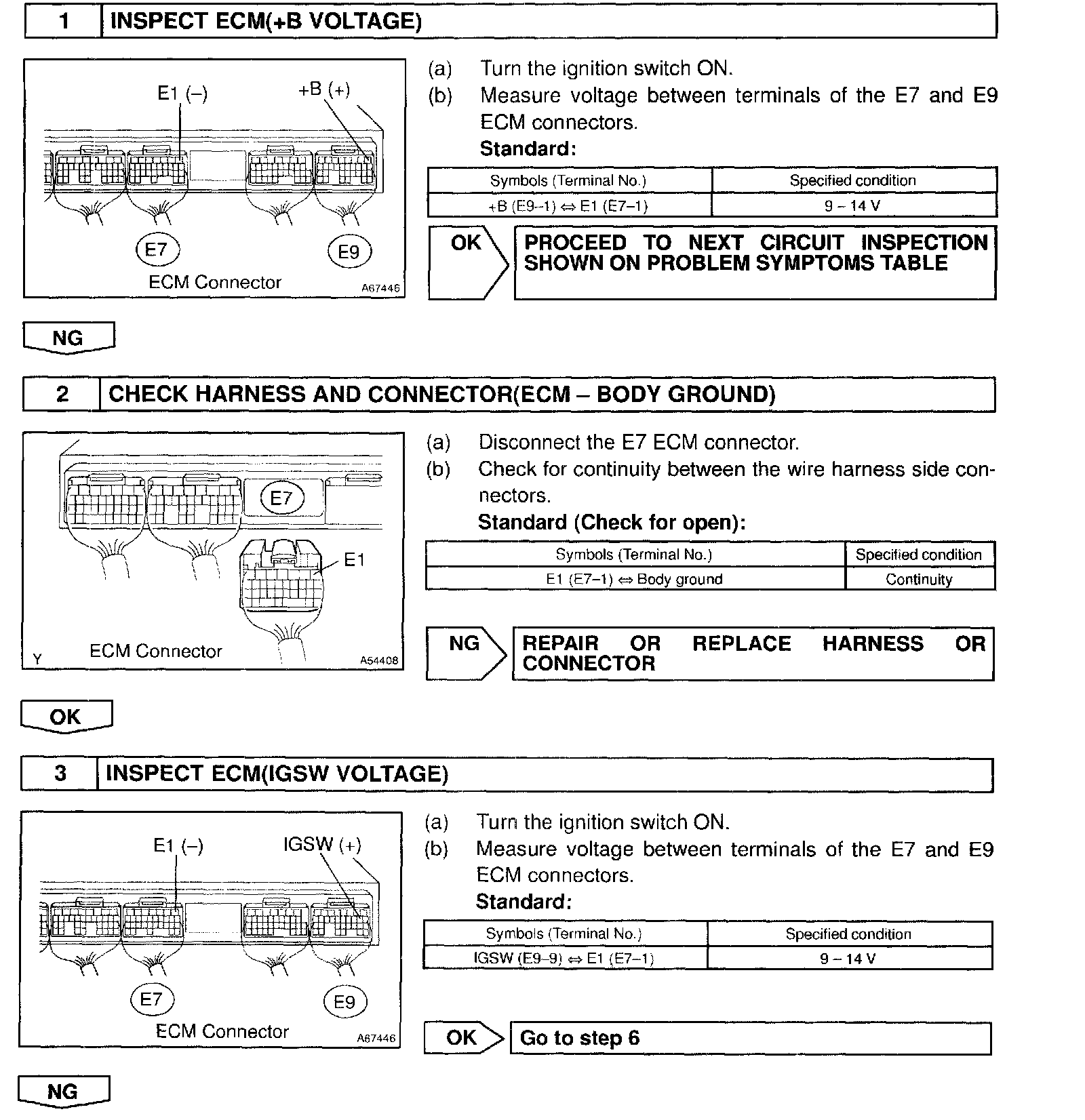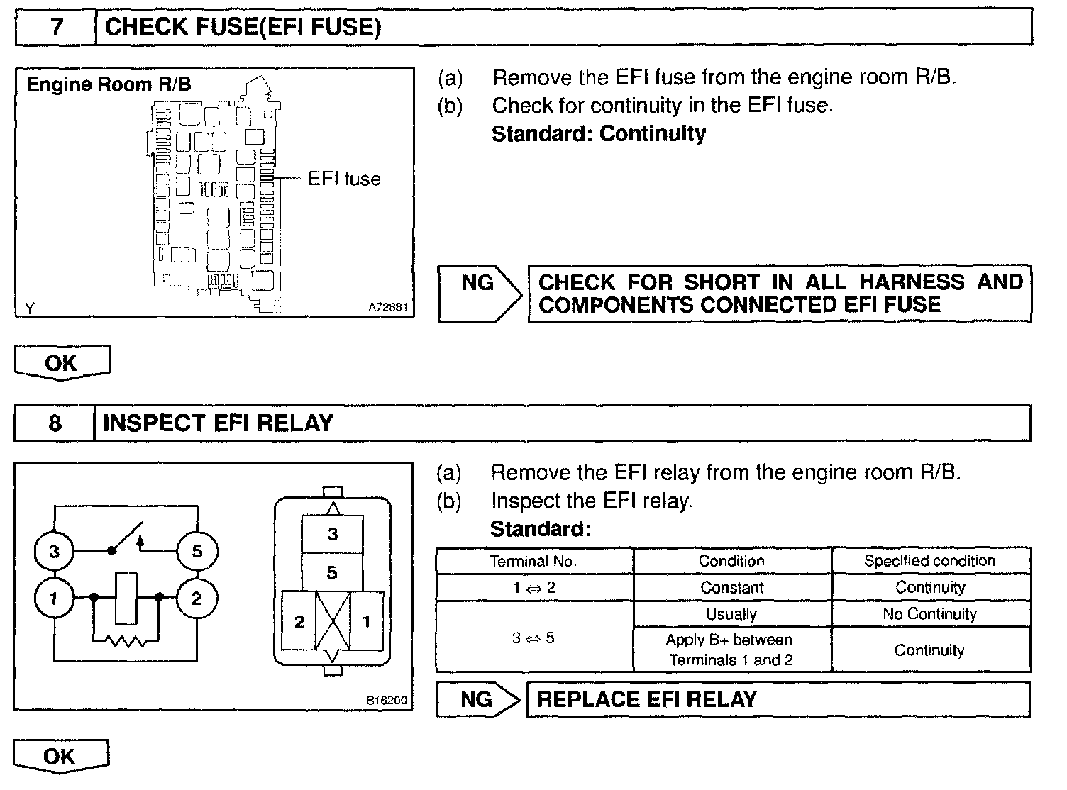 This signal causes current to flow to the coil, closing the contacts of the EFI relay and supplying power to terminal +B of the ECM.