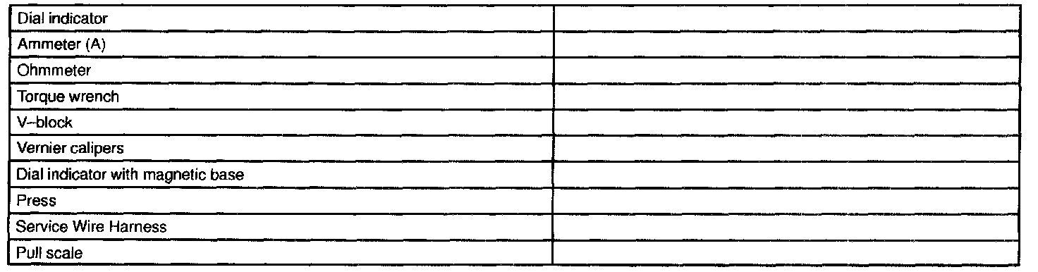 Starting And Charging - Recommended Tools: